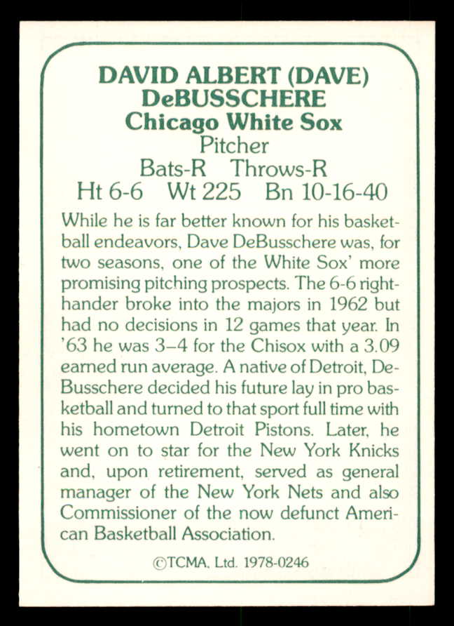 1978 TCMA #246 Dave DeBusschere White Sox Signed Autographed