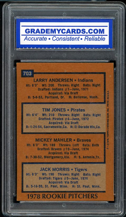 1978 Topps Baseball #703 Jack Morris Tigers GMC 7 NM 534103