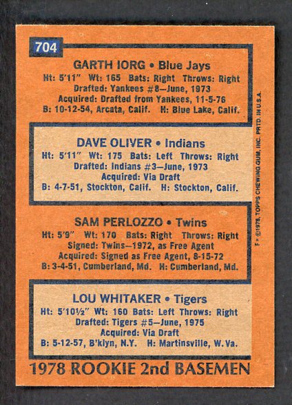 1978 Topps Baseball #704 Lou Whitaker Tigers NR-MT 542415