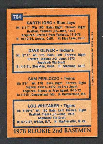 1978 Topps Baseball #704 Lou Whitaker Tigers NR-MT 542416