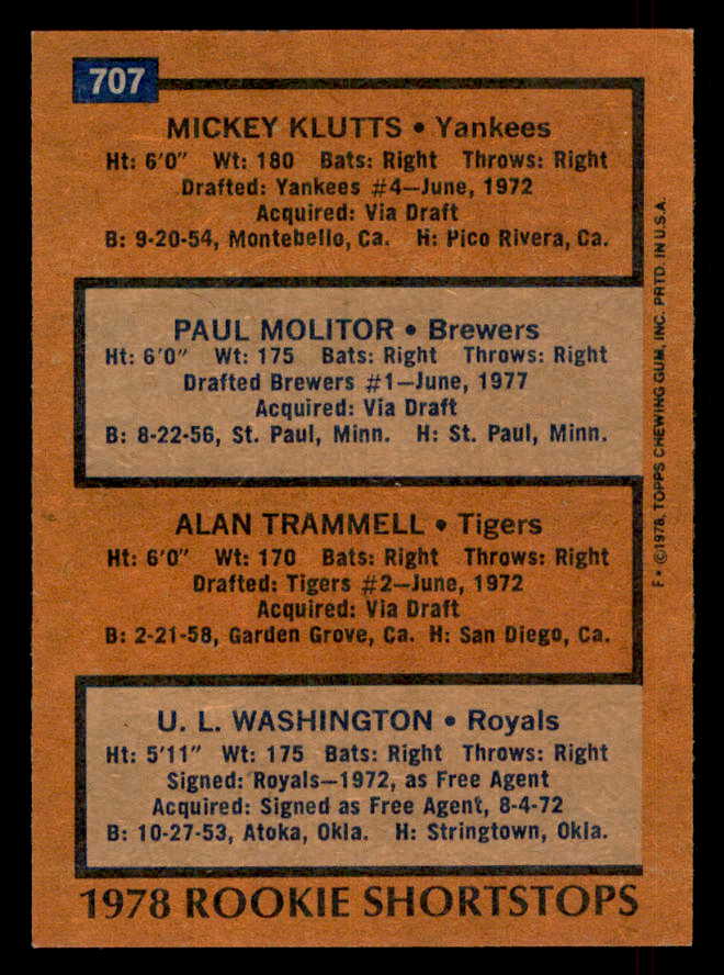1978 Topps Baseball #707 Paul Molitor Brewers EX-MT 541616