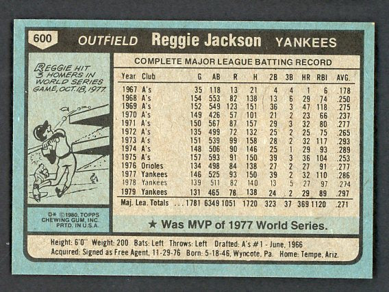 1980 Topps Baseball #600 Reggie Jackson Yankees EX-MT 541638