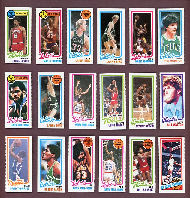 1980-81 Topps Basketball complete set in EX-MT condition overall (cards separated, not in panel form). Includes Bird rookie, Johnson rookie, Erving, Jabbar, Walton, Gervin, etc. Buy with confidence. We are the oldest full-time dealer in America, serving collectors since 1976. ALL CARDS ARE SUBJECT TO YOUR APPROVAL. If you ever receive anything that is unsatisfactory you may return it for replacement or full refund. The card pictured is the actual card you will receive. For orders or assistance, call our Toll Free number 888-548-9686 weekdays 8-6 Pacific.