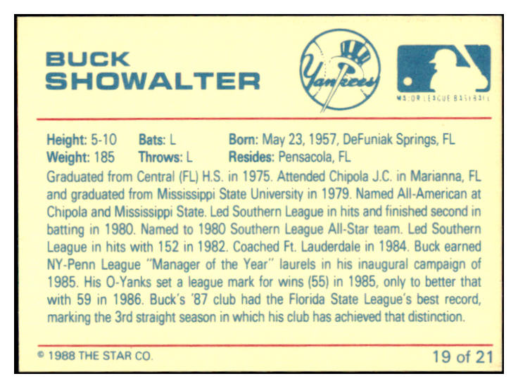 1986 Star #019 Buck Showalter Yankees Signed Autographed 531912