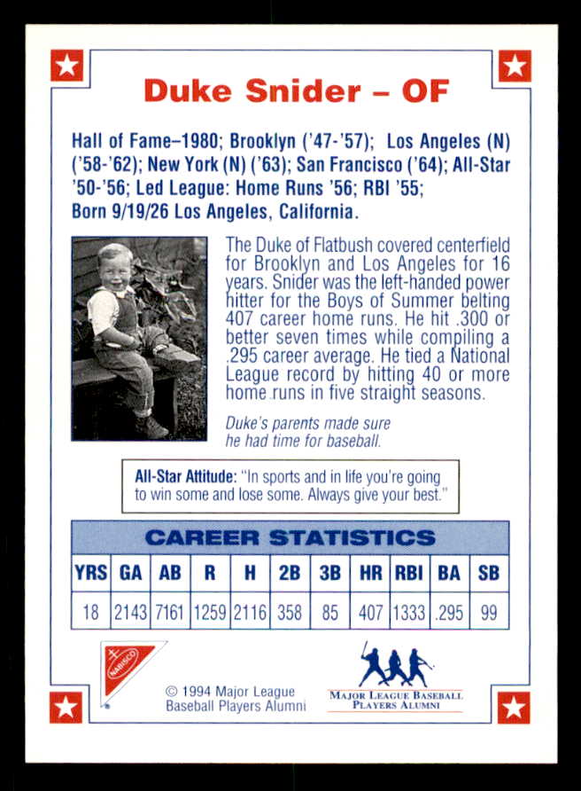 1994 Nabisco Duke Snider Dodgers Signed Autographed