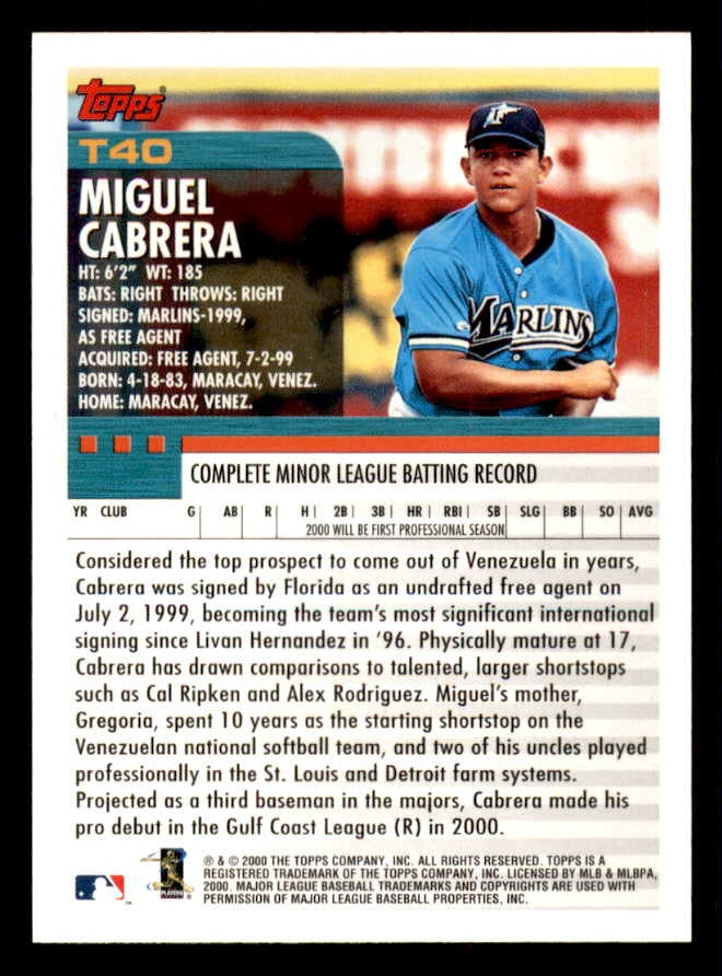 2000 Topps Traded #040 Miguel Cabrera Marlins EX-MT 543246