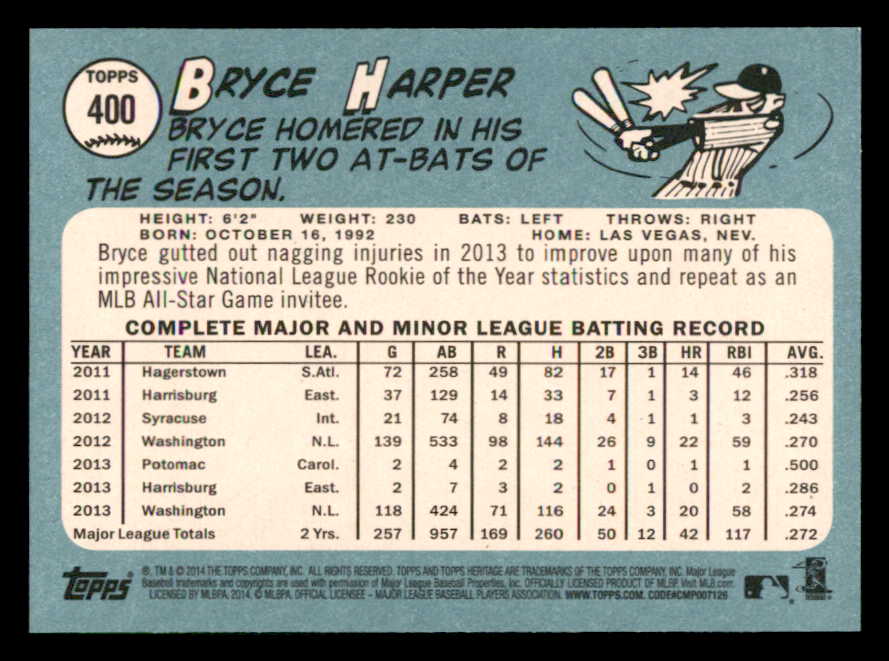 2014 Topps Baseball Heritage #400 Bryce Harper Nationals NR-MT Variation 541743